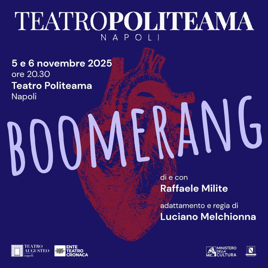Di e con Raffaele Milite, adattamento e regia di Luciano Melchionna. Una riflessione profonda sulla felicità, sull’amore e sul ritorno delle emozioni. “Prepara il cuore” è l’invito dello spettacolo, che ci porta a chiederci se, prima o poi, ci ritroveremo tutti un po’ più vicini a capire cosa significa davvero essere felici.Volantino (A5) – 12Politeama NapoliEduardoAfànisiboomerang
